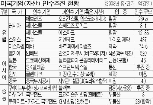 미 달러화 가치도 약세를 거듭하면서 미국 기업 인수 여건을 더욱 호전시키고 있다. 몇 년 전에 비해 외국 기업의 미국 기업 인수에 대한 미국 내 반발심도 크게 줄었다. 경기침체와 고용악화가 장기화되면서 "누가 주인이든 기업만 잘 이끌어가면 된다"는 인식이 확산되고 있어서다.