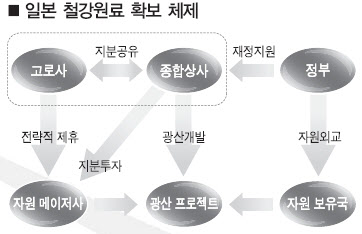 일본은 고로사·종합상사·정부의 긴밀한 협조 관계를 기반으로 철강원료 확보에 박차를 가하고 있다.
