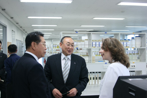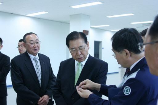 정준양 회장은 연구소를 자세히 살펴보는 한편 협력업체인 각종 윤활유 종합 생산업체인 범우연합 및 BIT에 대한 소개 및 애로 사항 등을 경청했다.