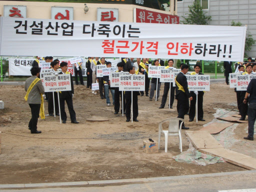건설업체 자재 구매 담당자들로 구성된 건설자재직협의회(이하 건자회)는 22일 양재동 현대제철 사옥 앞에서 철근 가격 인하를 요구하는 집회를 가졌다. 이들은 톤당 69만원 수준으로 철근 가격을 내릴 때까지 가격 인하 요구를 계속할 방침이라고 밝혔다. 건자회의 대규모 가격 인하 요구 집회는 올해만 벌써 2번째로 2월에도 약 100여 명의 회원이 모여 철근 가격 인하를 요구한 바 있다.