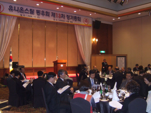 유니온스틸동우회(회장 배정운)는 23일 저녁 서울 르네상스호텔에서 OB와 YB 100여 명이 참석한 가운데 2009년 제 13차 정기총회 및 송년의 밤 행사를 가졌다.(사진 참조)