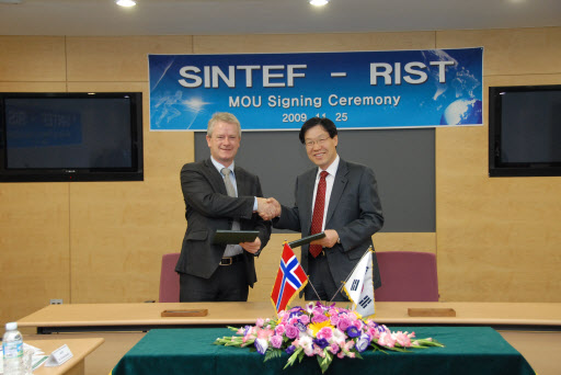 실용화 전문연구기관인 RIST(포항산업과학연구원, 원장 권오준)가 노르웨이의 세계적인 연구기관인 SINTEF(The Foundation for Scientific and Industrial Research:)와 상호협력을 위한 MOU를 체결했다.
