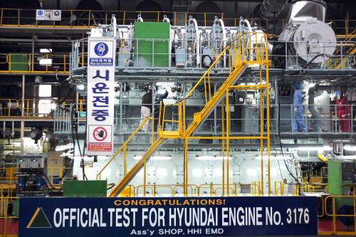 현대중공업은 최근 기존 엔진보다 질소산화물(NOx)의 배출량을 15% 가량 줄인 친환경엔진에 대한 시운전을 성공적으로 마치고, 발주처인 중국 양판(揚帆, YangFan)조선소에 이를 수출했다고 밝혔다.