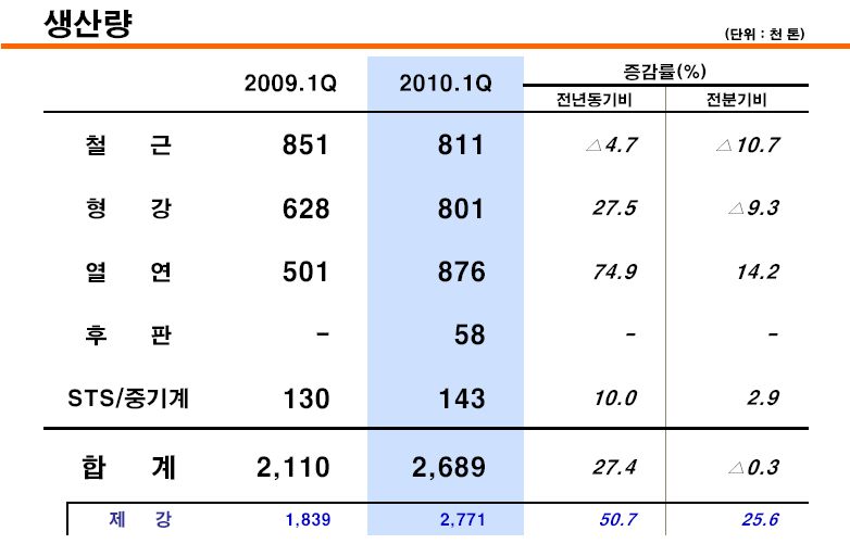 (표) 현대제철 1분기 제품 생산량 및 판매량 ▲ 현대제철 1분기 제품 생산량 ▲ 현대제철 1분기 제품 판매량 박형호 phh@snmnews.com 다른 기사 보기 관련기사 현대제철, 목표주가 상향 잇따라 저작권자 © 철강금속신문 무단전재 및 재배포 금지
