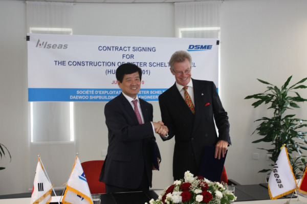 대우조선해양(대표 남상태)은 최근 네덜란드의 델프트에서 올씨(Allseas Group SA)의 에드워드 히레마 회장과 약 6억 달러 상당의 초대형 해양플랜트 설치선 1척에 대한 건조 계약을 체결했다고 밝혔다.