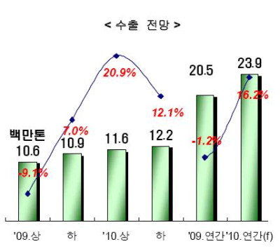 하반기 국내 철강업체의 수출은 증가하고, 수입은 감소할 것으로 전망된다.한국철강협회(회장 정준양)가 발표한 ‘2010년 하반기 철강재 수급전망’ 자료에 따르면 하반기 국내 수출은 중국의 위안화 절상, 주요국 출구전략 실시, 남유럽 재정위기에도 불구하고 수출선 다변화로 호조를 유지할 것으로 예측된다.