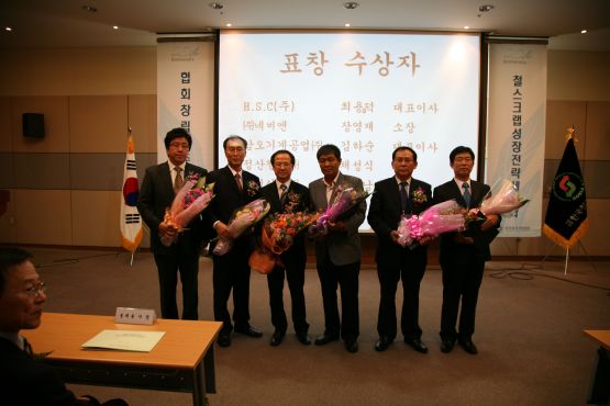 이날 행사에서는 ▲H.S.C 최용덕 대표이사 ▲삼오기계공업 김하순 대표이사 ▲정산철강 채성식 전무 ▲기전산업 김 남 이사 ▲네비엔 장영재 소장이 지식경제부장관 표창장을 수상했다.