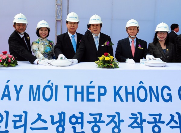 ▲ 포스코는 13일 베트남 연짝공단 포스코 VST 부지내에서 20만톤 규모의 스테인리스 냉연공장 착공식을 가졌다. 2012년 2월 냉연공장이 1차 준공되면 연간 23만 5천톤의 스테인리스 냉연제품을 생산하게 된다. 사진 왼쪽부터 이동희 대우인터내셔널 부회장, 보반못 동나이성장, 호치킴또아 산업무역부 차관, 정준양 포스코 회장, 김상윤 총영사, 최종태 포스코 사장. 방정환 bjh@snmnews.com 다른 기사 보기 저작권자 © 철강금속신문 무단전재 및 재배포 금지