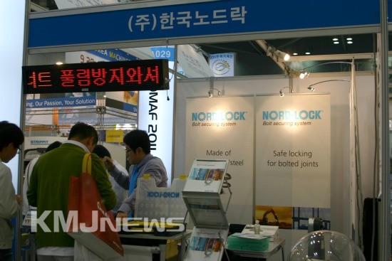 파스너업체인 한국노드락(대표 김실곤)이 한국산업대전에서 볼트 풀림방지에 최적인 노드락 와셔(Nord-Lock Washers)를 선보였다.