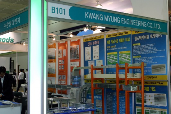 광명이엔지(대표 정윤석)는 국내 최초로 개발된 조립식 원터치 방식의 케이블 트레이를 선보였다. 케이블 트레이는 전력 및 통신 케이블을 지지하거나 보호하기 위한 금속배관재다. 광명이엔지의 케이블 트레이는 원터치 방식이기 때문에 작업공구 없이 좁은 공간에서도 시공에 문제가 없는 신제품으로, 볼트, 너트의 체결이 필요 없기 때문에 불필요한 인력 낭비를 줄일 수 있는 신개념 제품이다. 또한 설치 후 외부 돌출 부위가 없어 외관이 수려하다는 점도 장점으로 들 수 있다.