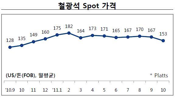 한편 국내의 포스코와 현대제철은 4분기에 톤당 165달러 전후의 공급가격 협상을 체결한 바 있다.