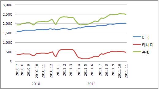 석유 산업 컨설팅 회사인 베이커 휴즈에 따르면 11월 첫째 주 캐나다의 리그 가동수는 전주 대비 23기 줄어든 476기를 기록했다.