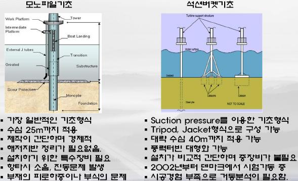 이어 모노파일 기초, 석션버켓기초, 트라이포드기초, 재킷기초 등 강관말뚝을 이용한 하부구조물 위에 재킷(풍력발전 설비)을 설치한 선진국의 사례를 제시하며 국내 해상풍력 환경을 기초로 강관말뚝 적용을 위한 우리만의 설치 기술 개발이 필요하다고 강조했다.