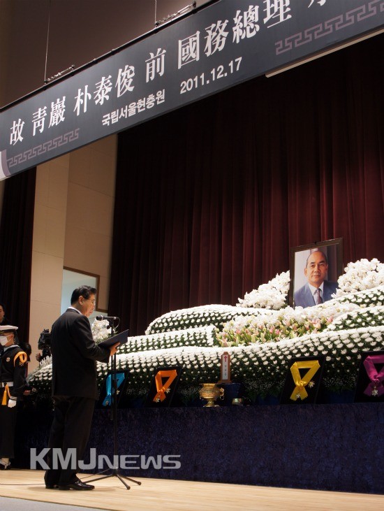 정준양 포스코 회장이 고(故) 박태준 명예회장의 영결식에서 조사를 낭독하며 고인을 추모하며 넋을 달랬다. 다음은 정 회장이 낭독한 조사 전문이다.