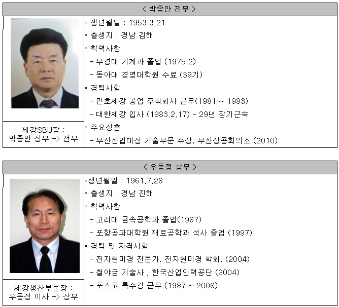<대한제강 승진 임원 주요 프로필>