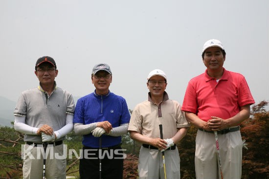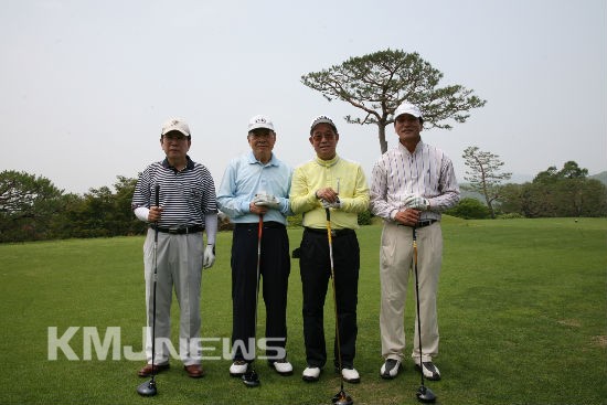 ▲ <C팀 2조 기념촬영> (사진 왼쪽부터)나석환 전 한보철강공업 사장, 오병문 전 현대제철 사장, 윤명중 전 현대하이스코 회장, 이태호 조아물산 회장. 이날 윤명중 전 회장은 Gross 85타, Net 73타로 OB 우승을 차지했으며, 이태호 회장은 YB 5등상(Gross 79, Net 74.2)을 수상했다.