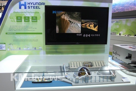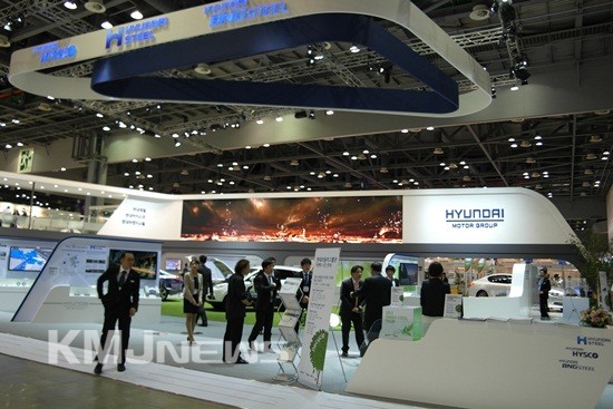 현대제철(부회장 박승하)은 금번 전시회에서 자원 순환형 사업구조를 표현하는 ‘그린 사이클 존(Green Cycle Zone)’을 통해 친환경 기업의 이미지를 표현해 관람객들의 많은 관심을 끌었다. 현대하이스코, 현대BNG스틸과 통합 전시 부스를 운영해 친환경 순환구조를 구성하는 현대자동차 그룹 철강 부문 3사가 모두 돋보일 수 있도록 공간을 구성하는데 역점을 뒀다.