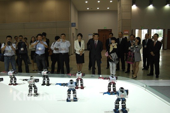 ▲ 최승옥 대표(앞줄 오른쪽 두번째)가 현대차그룹관에서 로보댄스를 보고 있다.