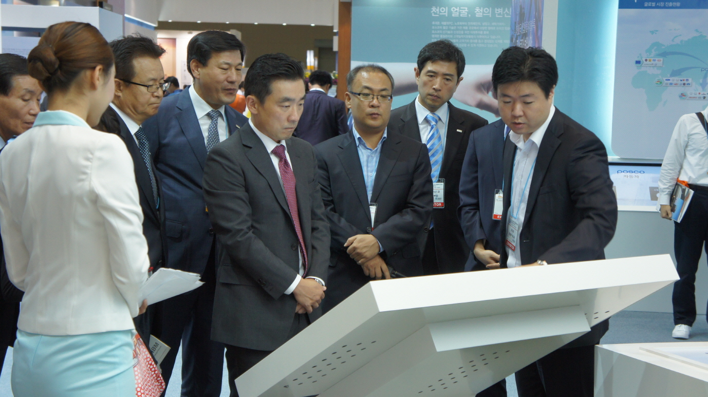 특히 이들은 경쟁사인 포스코 부스에 상당시간을 소요해 관람하는 모습을 보였다. 하지만 우유철 사장과 신성재 사장은 포스코에 대한 관심분야가 서로 달라 보였다.