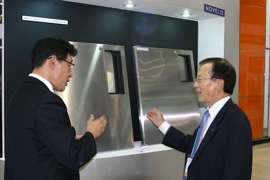 본지 송재봉 사장이 '제2회 국제 철강 및 비철금속 산업전'에 참가 중인 노벨리스코리아 부스를 방문, 전시제품 등을 살펴봤다.