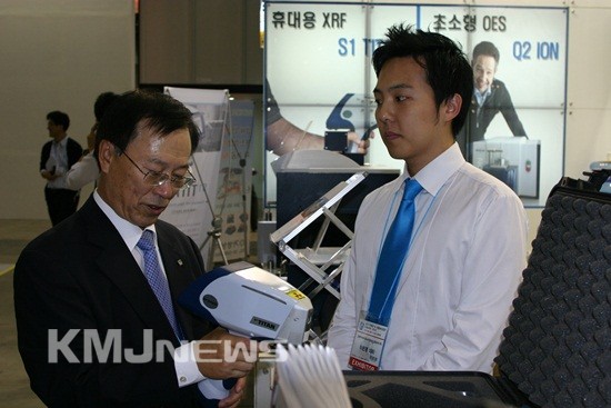 본지 송재봉 사장(겸 편집인)은 성분분석기 업체인 브루커코리아(대표 클라이브 하우워드 세이무어) 부스에 방문해 이 회사의 주력 제품인 초경량 휴대용 성분분석기 ‘S1 Titan'의 성능을 살펴봤다.