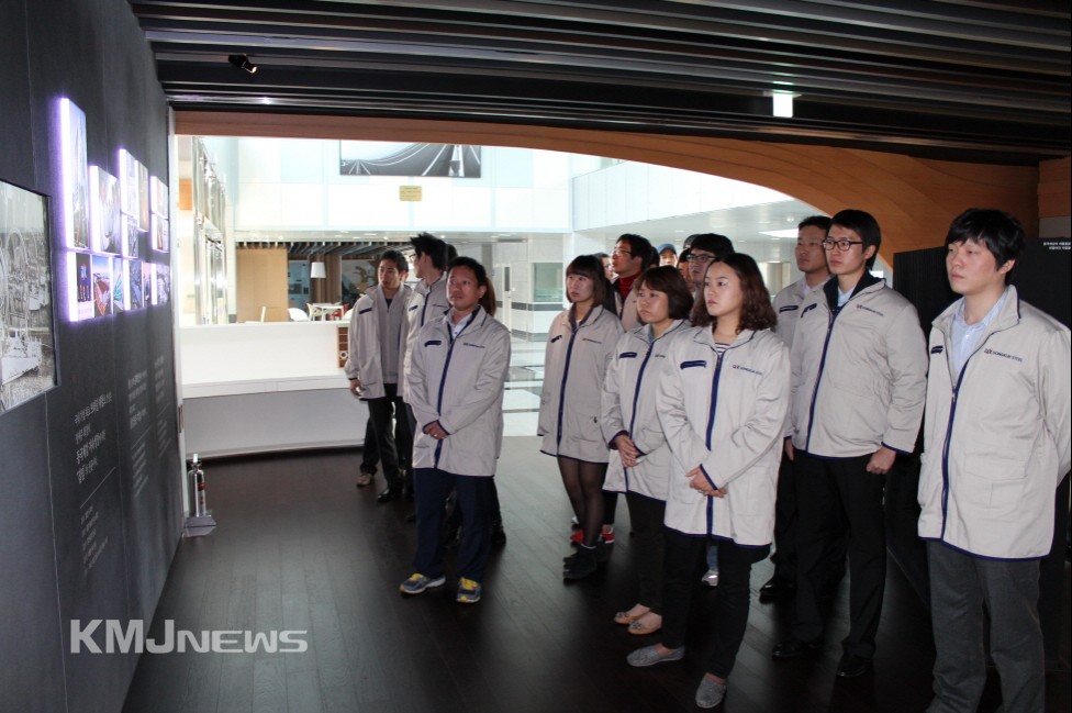 ▲ 동국제강의 역사와 생산제품에 대해 둘러 보고 있는 교육생들