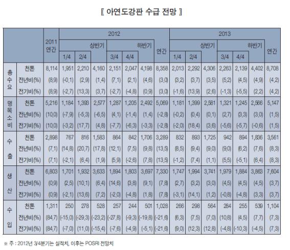 2013년에는 신규설비 가동과 내수 증가로 인해 생산에서 3.7%의 증가세가 이어질 전망이다. 특히 하이스코의 생산능력이 확대되면서 2.8%의 증가세를 이어갈 것으로 예상된다.