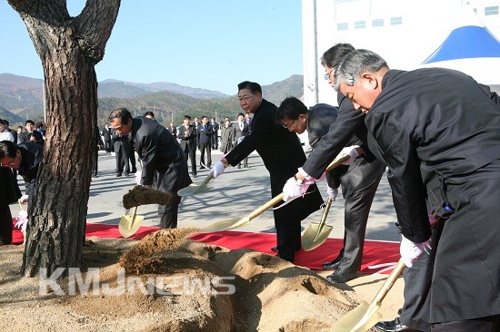 ▲ 주요 인사들이 포스코 마그네슘 제련공장이 준공행사를 기념하기 위한 식수행사를 갖고 있다.