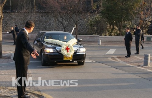 ▲ 영결식 장으로 들어오는 故 이운형 회장 운구 차량.