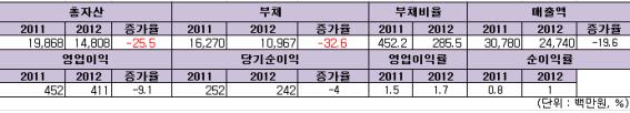 강관 유통업체인 우양강업(대표 이원재)의 2012년 매출액이 전년비 19.6% 감소한 247억, 영업이익은 전년비 9.1% 감소한 4억1,100만원, 당기순이익은 전년비 4% 감소한 2억4,200만원을 기록했다.