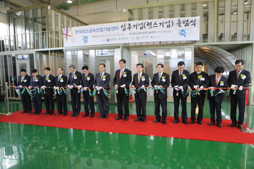 11일 희소금속산업기술센터(센터장 김택수/ 이하 KIRAM)는 동 센터에서 5개 입주기업(희성금속, 동양AK코리아, 세종메이저인터내쇼날, 신생금속공업, 고등기술연구원)과 ‘챔스기업 출범식’을 가졌다.