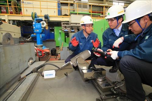 또 로봇 팔이 6개의 관절로 이뤄져 사람이 할 수 있는 대부분의 작업이 가능하며 작업 속도가 숙련된 기량의 용접사와 비슷해 균일한 품질로 장기간 연속적인 작업이 가능하다는 특징이 있다.