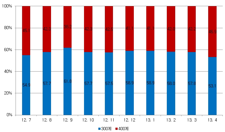 4월 판매비중 46.9%로 7개월 연속 40%대 유지