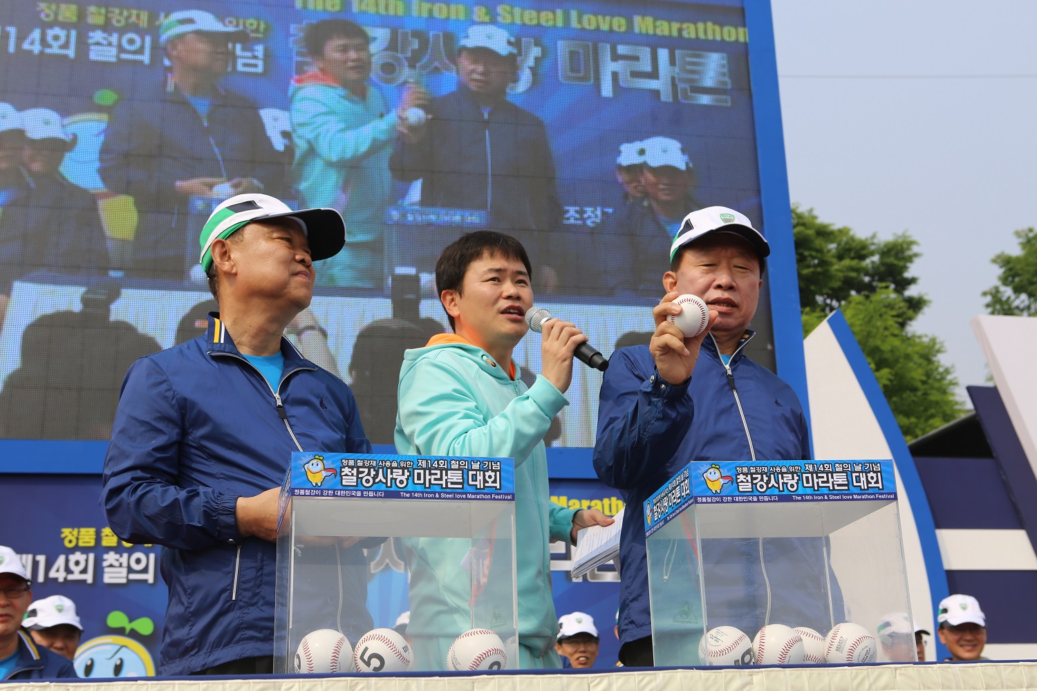 한국철강협(회장 정준양)가 주최하고 본지(회장 배정운)와 산업통상자원부(장관 윤상직)가 후원한 제14회 철의 날 기념 ‘철강사랑 마라톤 대회’가 철강 CEO를 비롯한 철강업계 임직원, 가족 등 6,000여 명이 참석한 가운데 25일 하남시 미사리 조정경기장에서 열렸다.