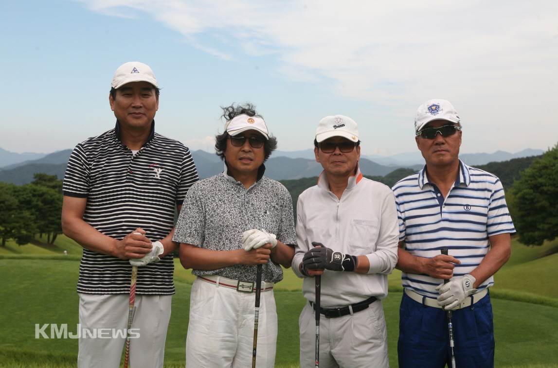 A팀 1조가 티샷에 앞서 사진촬영에 임했다. 사진은 왼쪽부터 세아베스틸 윤기수 부사장,  유일특수강 한박성 대표, 대성철강 이진구 대표, 국제특수강 이희영 사장의 모습.