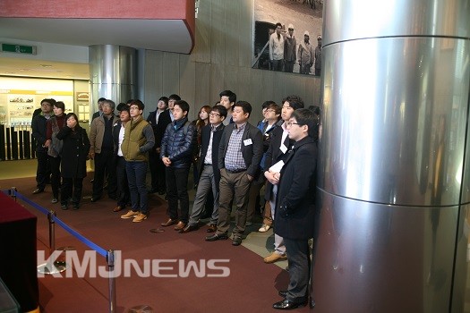▲ 13일 참가자들이 포스코역사박물관을 찾아 설명을 듣고 있다.