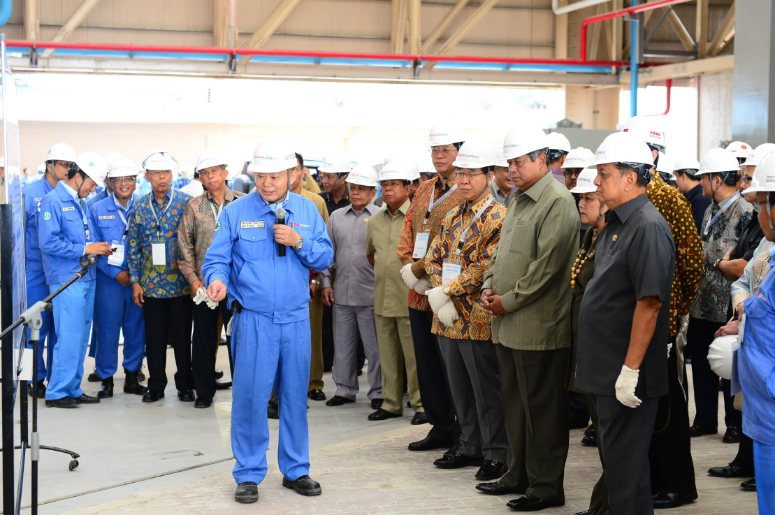 정준양 회장은 인사말을 통해 “지난 30개월간의 일관제철소 건설은 쉽지 않은 여정이었지만 한국의 기술과 인도네시아의 우수한 인적자원이 힘을 합쳐 성공할 수 있었다”며, “포스코가 제철보국 이념으로 국가경제 발전의 밑거름이 됐듯 크라카타우포스코도 인도네시아에서 포스코와 같은 역할을 수행해 줄 것이라 확신한다”고 말했다.