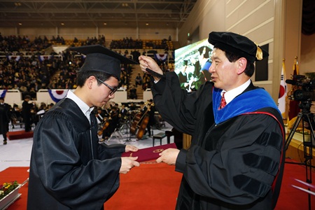 김용민 총장은 식사를 통해 졸업생들에게 “졸업식은 대학교 교육의 완수를 기념하는 자리기도 하지만 사회에 보탬이 되도록 더 큰 도전을 시작하는 자리이기도 하다”며, “감사와 겸손의 마음으로 재능을 이웃과 사회를 위해 나누고 베풀기를 바란다”고 강조했다.