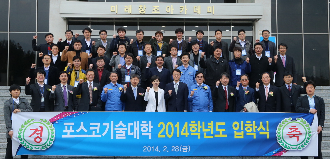 포스코(회장 정준양)가 2월 28일 포항 미래창조아카데미와 광양 교육관에서 포스코기술대학 첫 입학식을 가졌다.