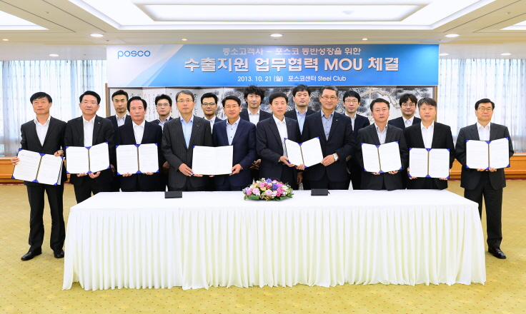 포스코는 지난해 10월에 15개 중소고객사와 수출지원 업무협력 양해각서(MOU)를 체결했다. 포스코는 이들 고객사에 대해 수출판로 개척과 판매 확대뿐만 아니라 공동 마케팅, 주문자상표 부착생산(OEM) 계약, 해외 프로젝트 수주, 물류, 투자 등 광범위한 부문에서 지원하고 있다. 해외 판로 개척이 절실한 고객사에 실질적인 성과 도출을 도움으로써 고객성공을 지원하고 포스코와의 협력도를 높이는 마케팅 효과를 기대하고 있다.