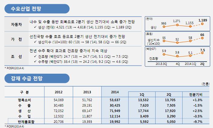 올 2분기 국내 주요 수요산업군의 생산량이 증가할 전망이다.