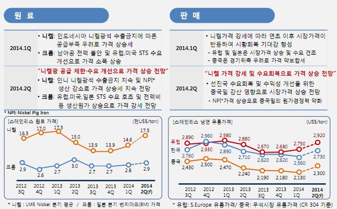 스테인리스 원료인 니켈은 인도네시아 니켈광석 수출금지 지속 등으로 가격 상승세가 이어질 전망이다. 크롬 역시 유럽과 미국, 일본의 스테인리스 수요 호조 및 전력비 등 생산원가 상승으로 강세를 이어갈 것으로 포스코는 전망했다.