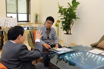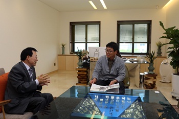 송재봉 사장은 신창특수강 사장실, 회의실, 사무실, 휴게실 등 신 사옥 이곳 저곳을 둘러보고 친환경 목재 사용과 조명시설 훌륭한 사무환경 및 디자인에 대한 칭찬을 아끼지 않았다.