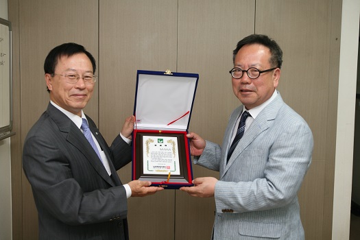 본지 송재봉 사장(겸 편집인)이 16일 오전 서울시 양천구 목동에 자리한 세한철강을 찾아 감사패를 전달했다.