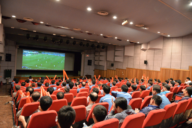 동국제강그룹사 직원 150여명이 지난 18일 오전에 진행된 2014브라질 월드컵을 관람하는 시간을 보냈다.