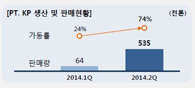 회사측은 2분기 인니밀 가동률이 74%에 이르렀으며, 제품판매량은 53만5천톤을 달성했다고 24일 밝혔다. 이는 1분기 가동률 24%에서 50%p 오른 수치이며, 제품판매량은 47만1천톤이 증가했다.