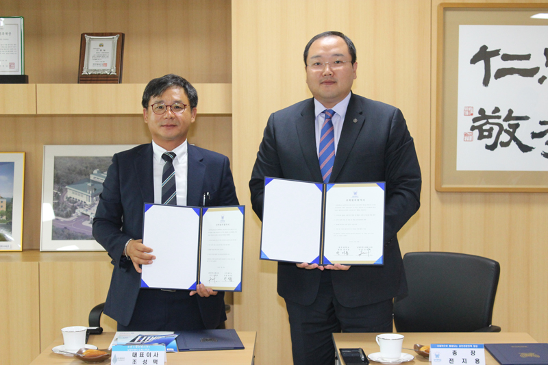 ▲ 유민스테인레스 조성택 사장은 지난 23일 경복대학교 우당관 4층 회의실에서 경복대학교(총장 전지용)와 취업보장형 산학협력협약을 체결했다.