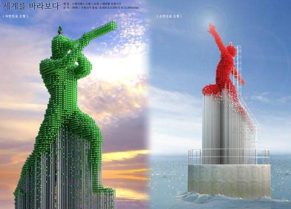 부산지방해양항만청은 해운대 해수욕장 잠제시설 위에 설치할 등표 조형물에 대한 현상공모 심사결과, 민광식 씨의 '세계를 바라보다'를 당선작으로 선정했다고 1일 밝혔다.