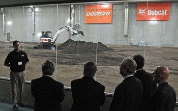 사진-2: 회사 관계자들이 밥캣 Acceleration Center내 신규 장비 시험장에서 시험과정을 지켜보고 있는 장면.