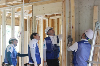 <사진설명> 볼보건설기계코리아 임직원들이 여름휴가를 반납하고 14년간 지속적으로 2014사랑의 집짓기(해비타트)’에 참가하고 있다.